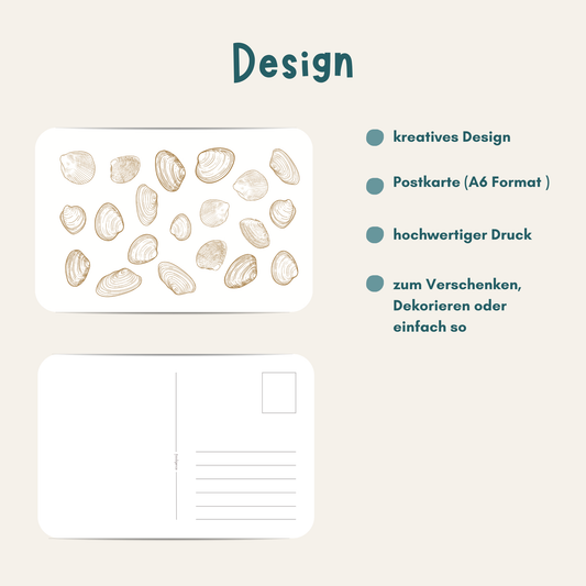 Postkarte Muscheln DIN A6 – Geschenk für besondere Anlässe & Strand & Meerliebhaber